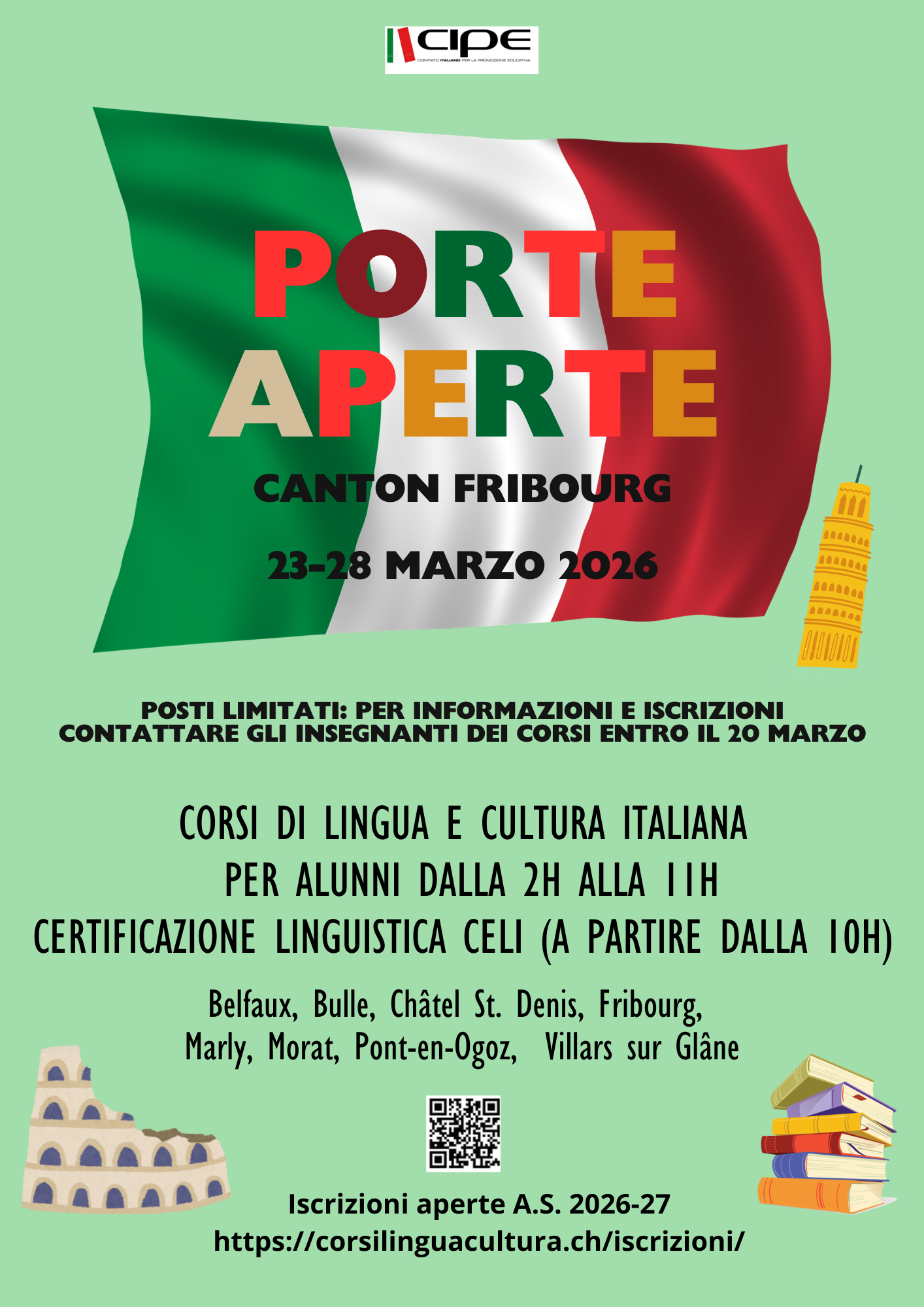 Salve! Siamo un gruppo di genitori che si sono uniti formando il CSI Friburgo (Consiglio Scuola Italiana del cantone di Friburgo) per sostenere i corsi di lingua e cultura italiana organizzati dall’Ambasciata italiana e gestiti dell’ente CIPE di Neuchâtel.
