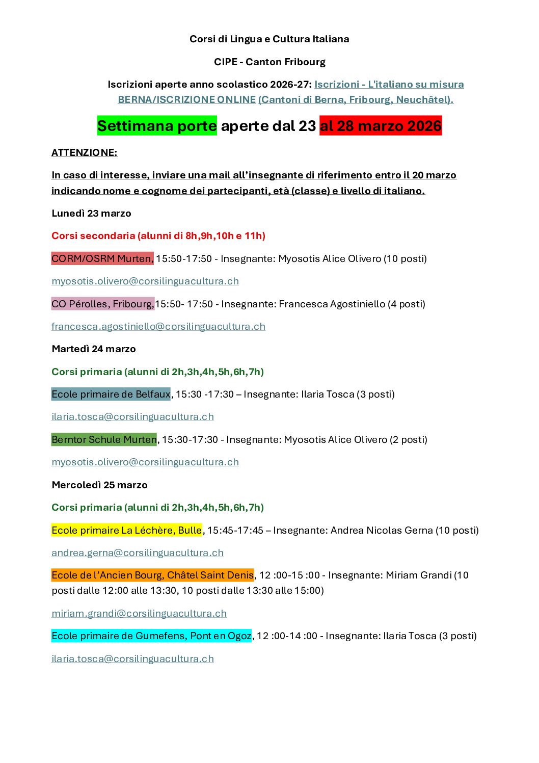 Contattaci per maggiori informazioni!Settimana porte aperte dal 23 al 28 marzo 2026
